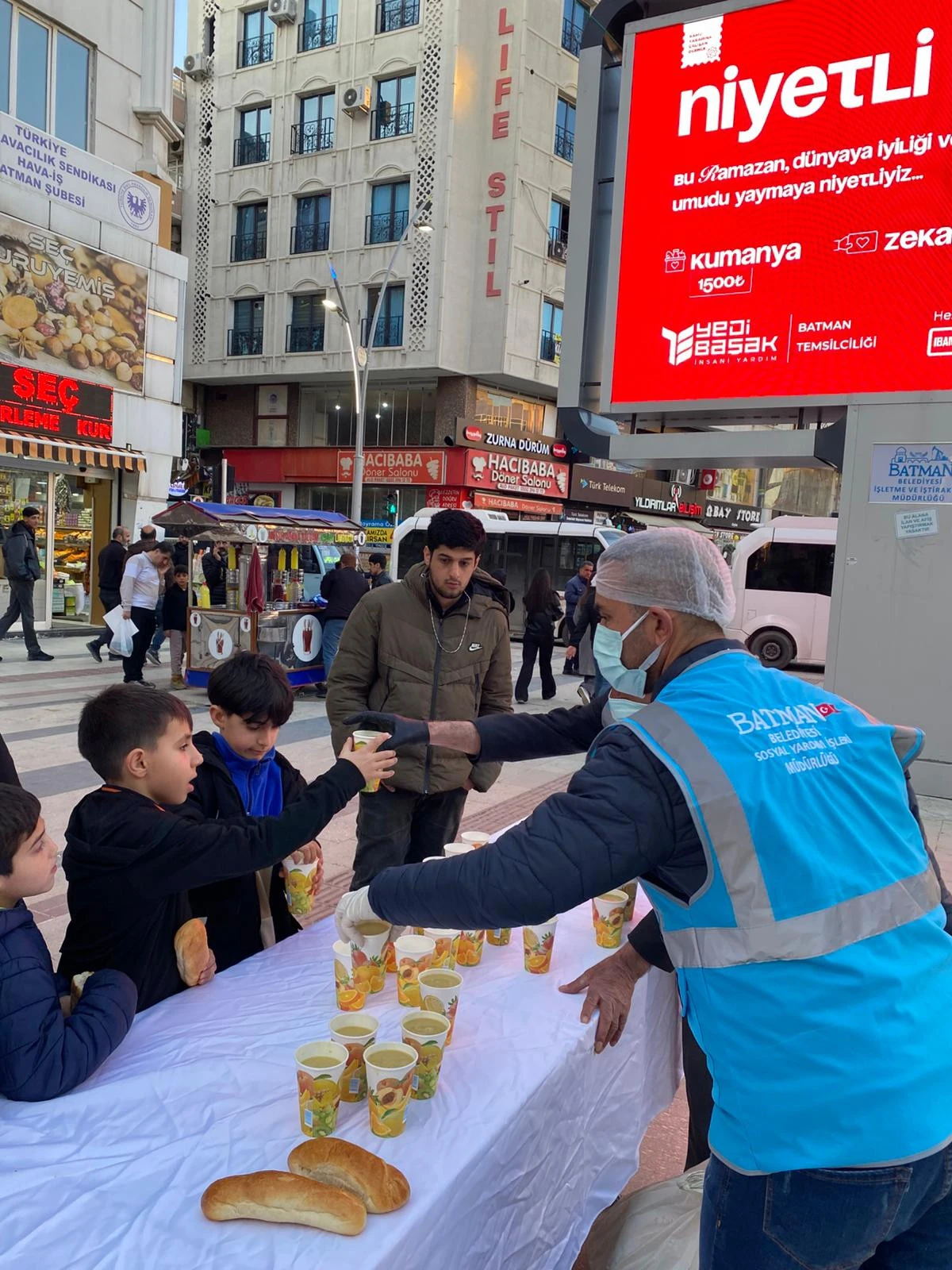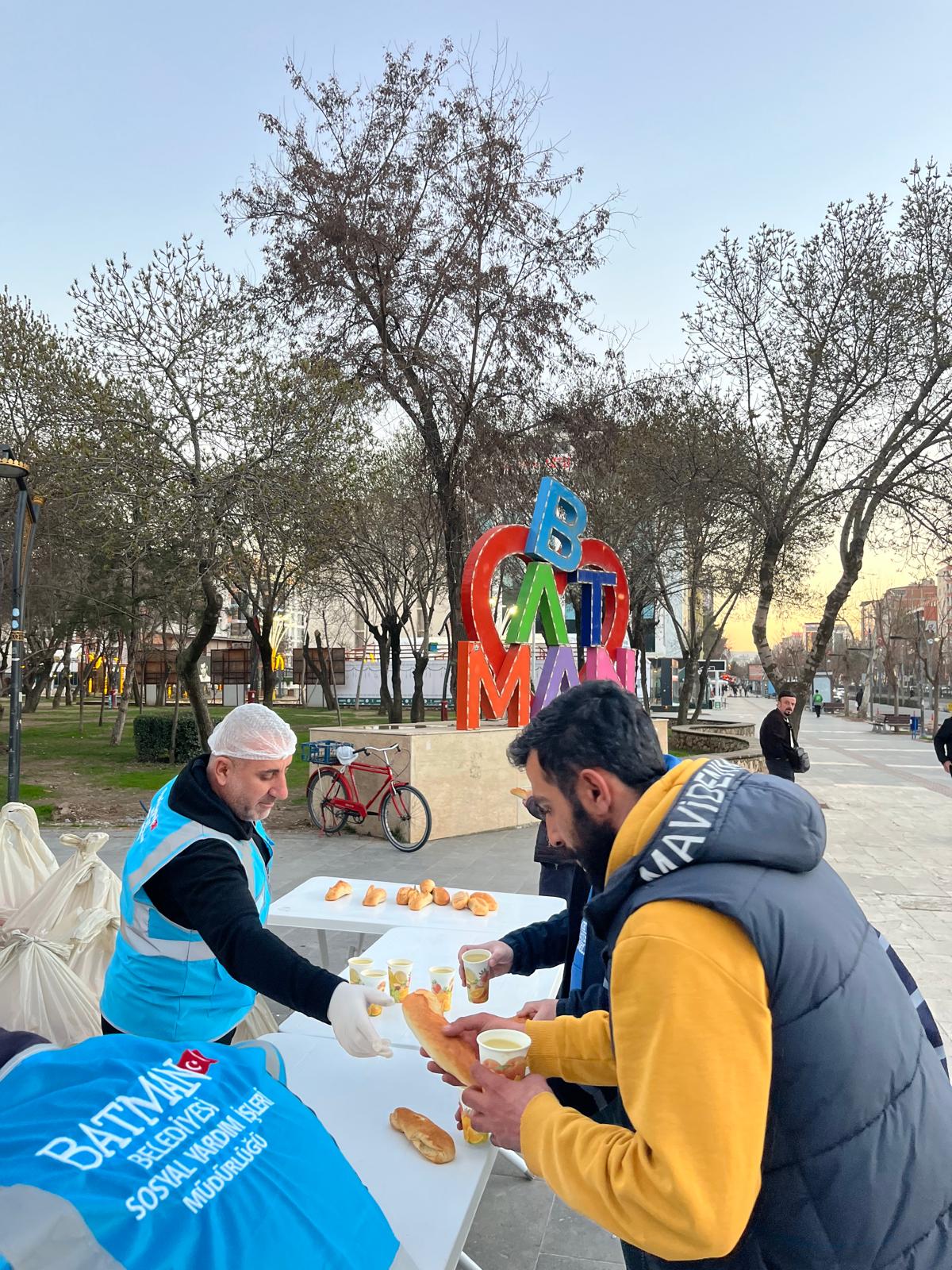 20 Şubat tarihinden Ramazan ayının sonuna kadar Gülistan Caddesi girişi (Komando Caddesi güzergâhı) ile Atatürk Parkı’nda vatandaşlara sıcak bardak çorba ve ekmek ikramı yapılacak.
