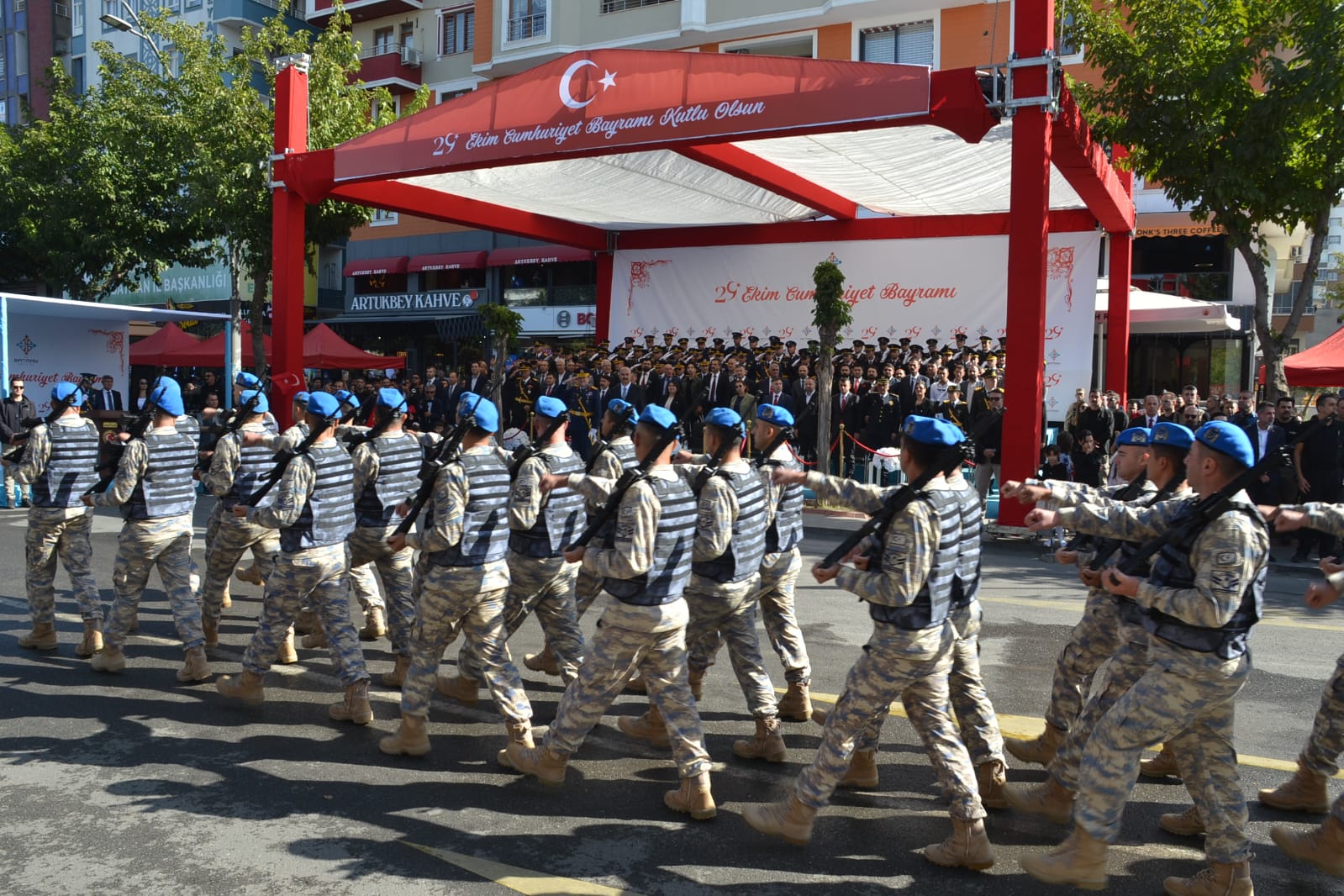 29 Ekim sabahı saat 09.30’da Vali ve Belediye Başkan Vekili Ekrem Canalp, protokol üyelerinin tebriklerini kabul etti. Ardından saat 10.00’da başlayan resmi geçit töreni öncesinde, Vali Canalp ve Garnizon Komutanı Tuğgeneral Mehmet Ali Koç, halkı selamladı.