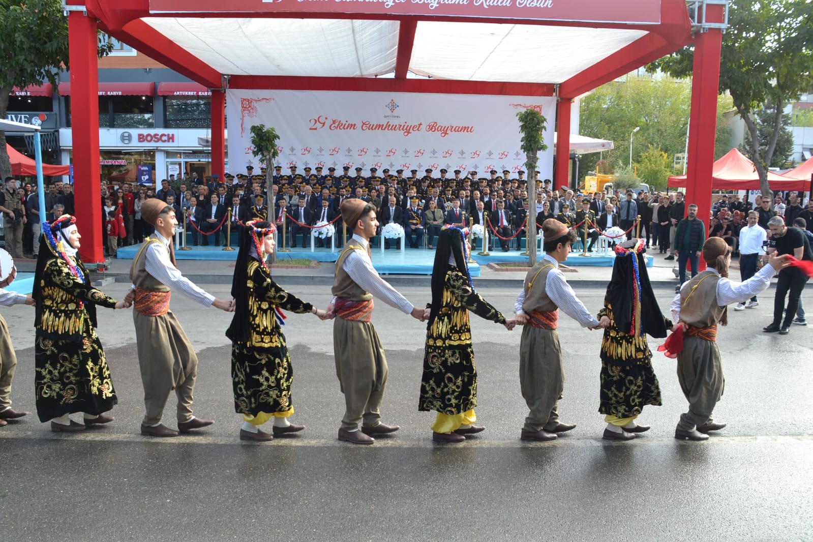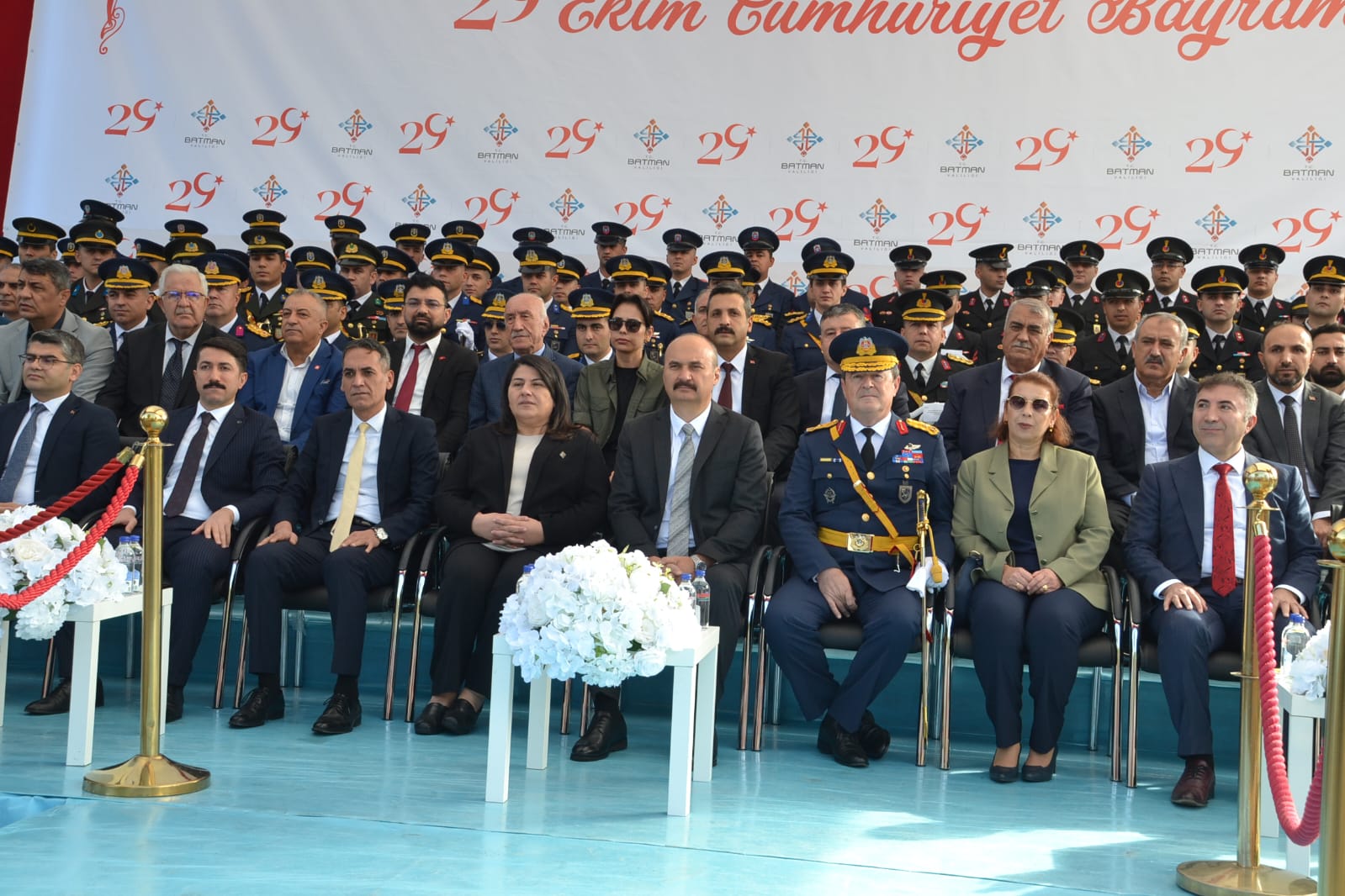 Cumhuriyetimizin 102. kuruluş yıl dönümü dolayısıyla Batman’da düzenlenen tören, Atatürk Anıtı’na çelenk sunulmasıyla başladı. Valilik bahçesindeki törenin ardından kutlamalar, Valilik önünde kurulan platformda devam etti.