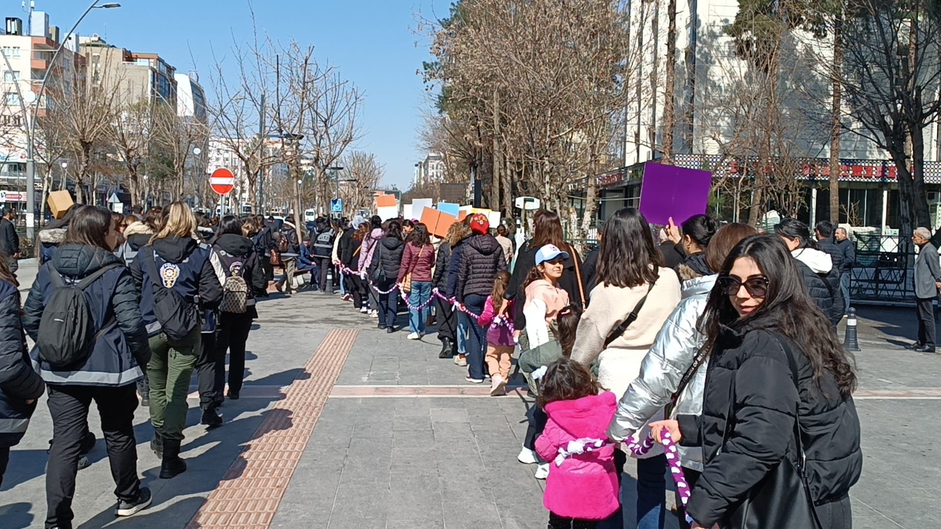 Kadınlar, Turgut Özal Bulvarı’nda bulunan Migros önünden Yılmaz Güney Sergi Alanı’na kadar yürüyerek, dövizleri, renkli pankartları ve sloganlarıyla taleplerini dile getirdi. Yürüyüş öncesi alanda bir araya gelen kadınlar, müzik eşliğinde halay çekip zılgıtlarla 8 Mart’ın coşkusunu yaşadı.