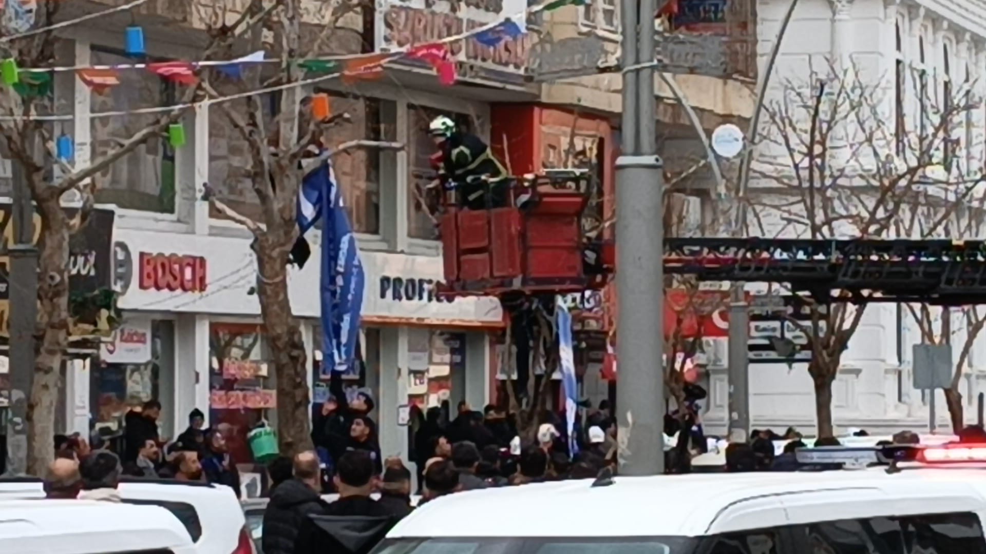 Öte yandan çıkan arbede sırasında bir zabıta memuru kimliği belirsiz kişi veya kişilerce darp edildi yaralı zabıta memuru hastanede tedavi altına alınırken asılı pankart ise itfaiye ekipleri tarafından söküldü.