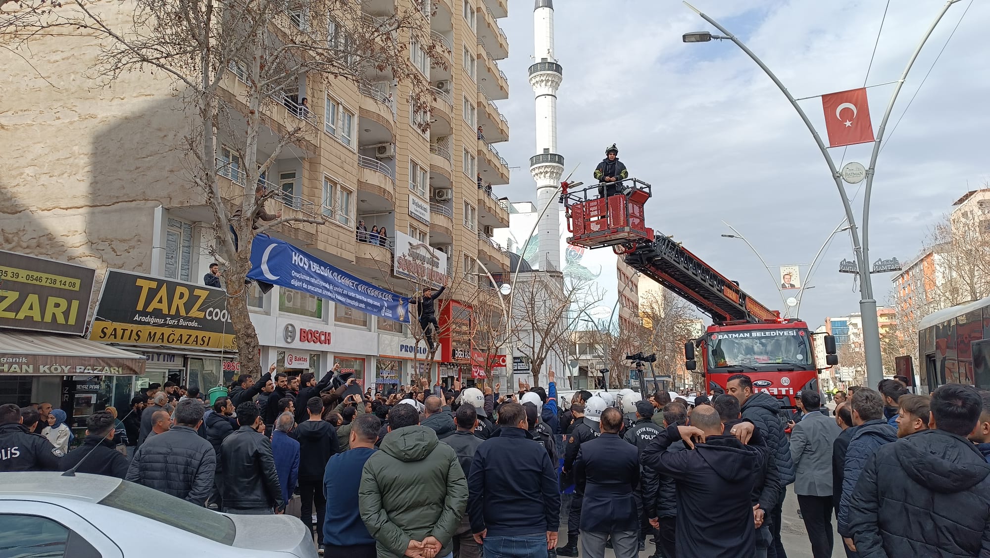 Batman Turgut Özal Bulvarı, Yıldız Camii mevkiinde iki ağaç arasına asılan "Hoş Geldin Rahmet Ayı Ramazan" yazılı pankart, gerginliğe yol açtı. Çıkan olaylarda bir zabıta memuru yaralanırken, emniyet güçleri çok kişiyi gözaltına aldı.