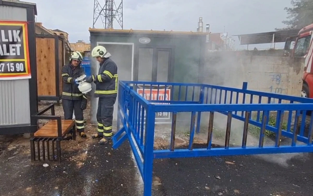 Batman’ın Gültepe Mahallesi’nde bulunan sanayi sitesindeki özel güvenlik kulübesinde, henüz bilinmeyen bir nedenle piknik tüpü aniden alev aldı.