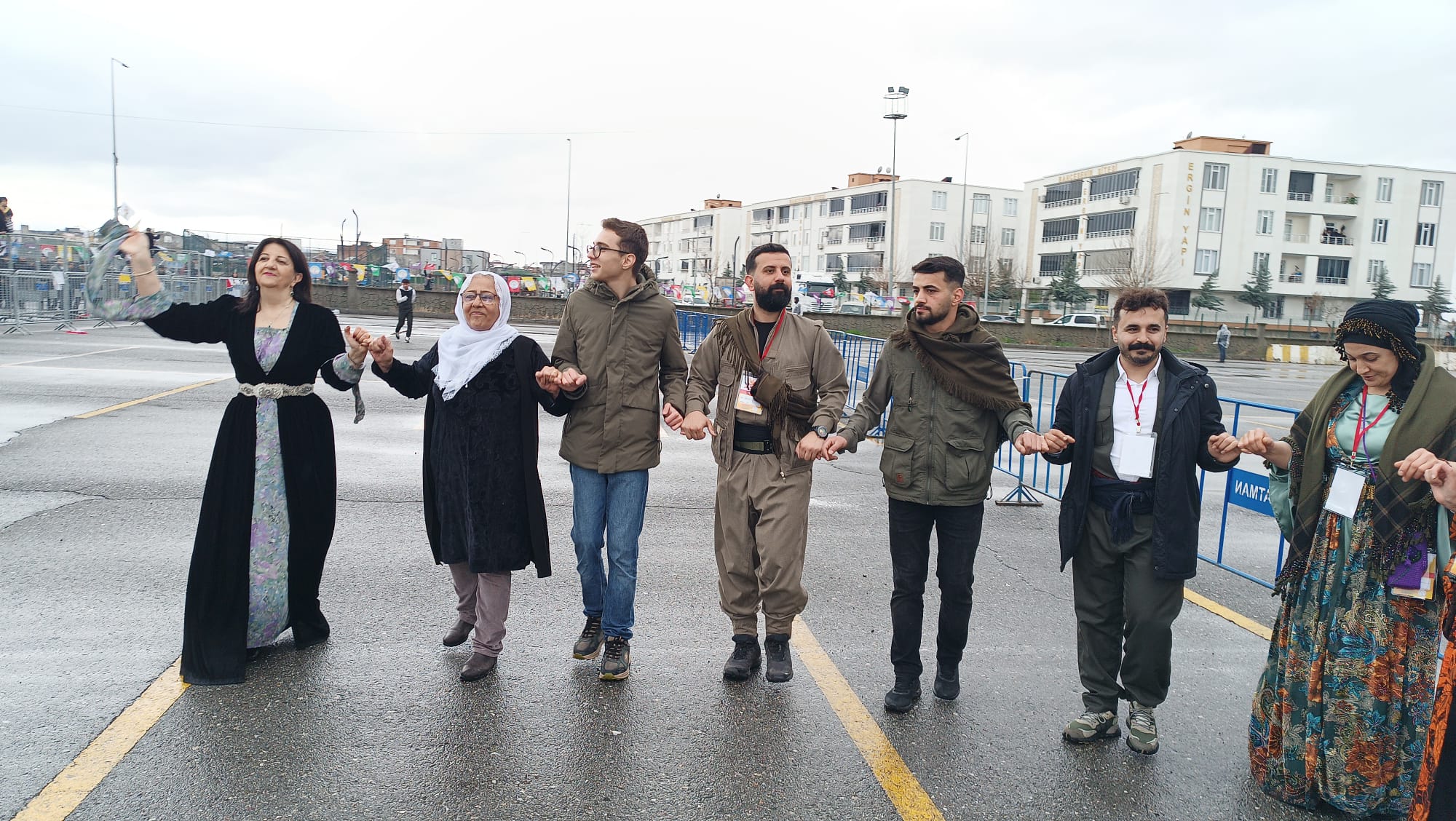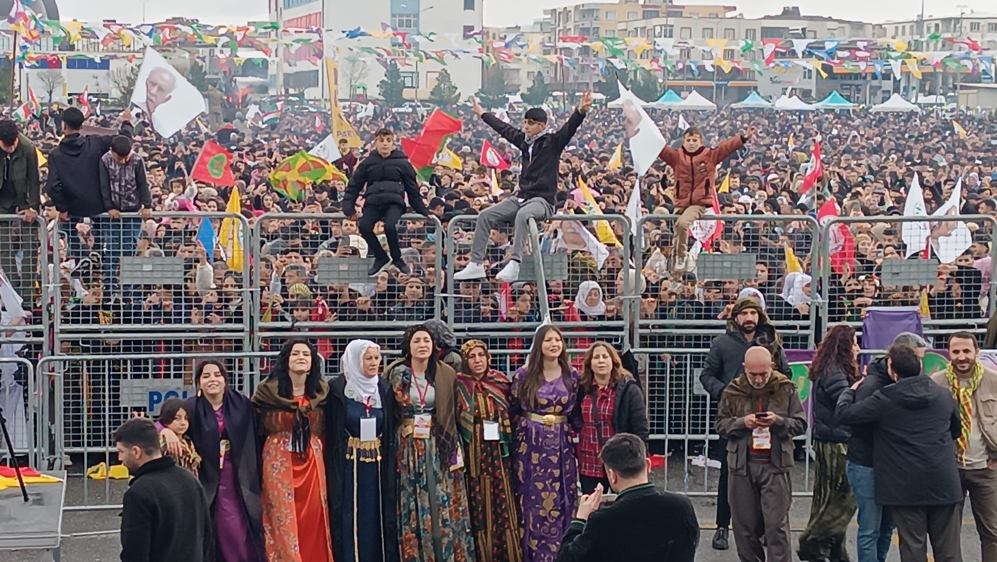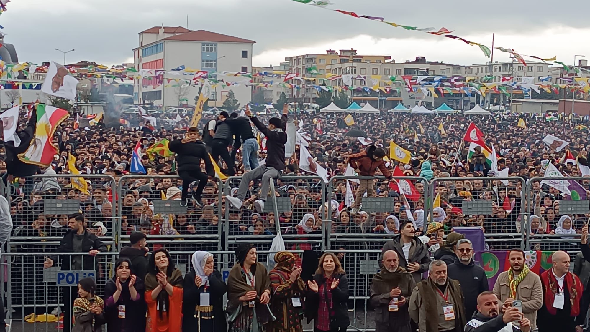 Batman Otogarı yanındaki fuar alanında düzenlenen kutlamalar, sabahın erken saatlerinde başladı. Batman İl Emniyet Müdürlüğü ekiplerince alan çevresinde geniş güvenlik önlemleri alınırken, vatandaşlar oluşturulan arama noktalarından geçerek alana giriş yaptı. "Özgürlük için Demokratik Toplum Newrozu" şiarıyla düzenlenen etkinliğe katılan binlerce kişi, sağanak yağış ve soğuk havaya aldırış etmeden halaylar ve zılgıtlarla bayramı kutladı.