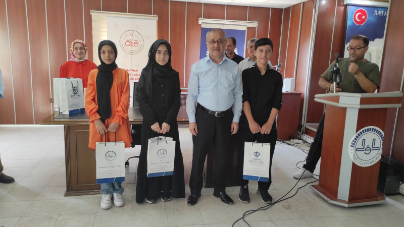 Batman İl Müftülüğü tarafından 2023 Yılı Yaz Kur’an Kursuna katılan öğrencilere yönelik Kur’an-ı Kerimi güzel okuma ve Temel Dini Bilgiler yarışmaları düzenlendi. Dereceye giren öğrencilere tablet, bisiklet, çeyrek altın ve saat ödülleri İl Müftüsü Nihat KÖK tarafından verildi.