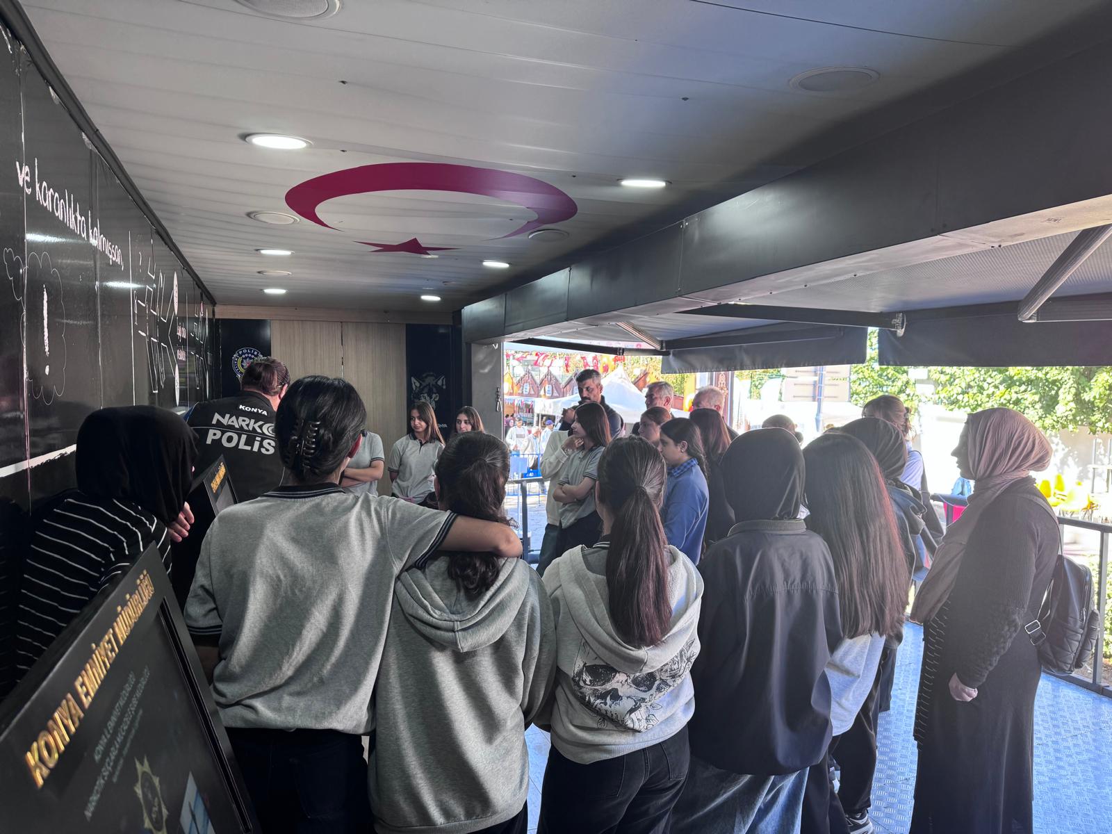 TIR içerisinde yer alan dokunmatik ekranlı bilgisayar aracılığıyla vatandaşlara; uyuşturucunun birey ve toplum üzerindeki olumsuz etkileri, korunma yöntemleri ve mücadele yolları anlatıldı.